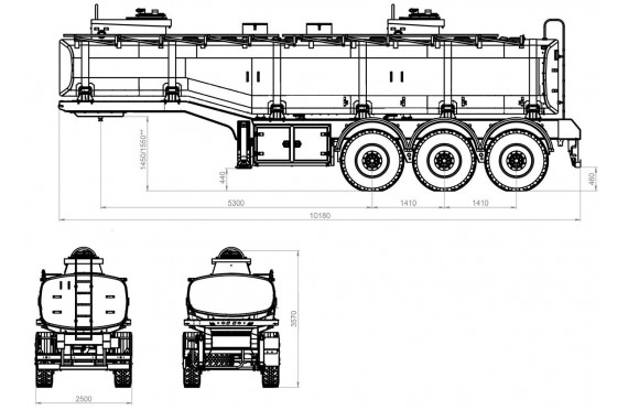 26 000 литров, переменное сечение, шины 425/85R21/6+1, рессорная или пневматическая подвеска