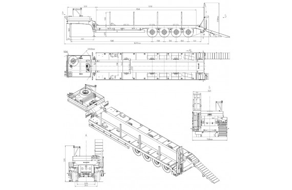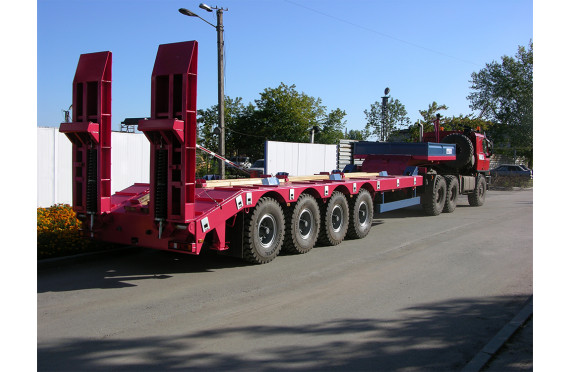 50000 кг, шины 385/65R22,5 или 445/65R22,5/ 6+1, присавные алюминиевые трапы, платформа 12200 мм, ССУ 1450 мм, пневматическая подвеска, раздвижные коники 1500 мм, съемные борта или без них, в ГАБАРИТЕ по ДЛИНЕ АВТОПОЕЗДА с КАМАЗ 6x6