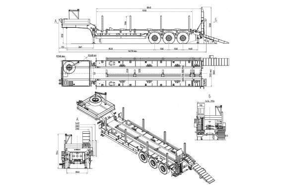 47000 кг, шины 445/65R22,5 395/85R20 / 6+1, платформа 11220 до трапов) x 2500 с уширителями до 3000 мм, механические трапы, ССУ 1530 мм, пневматическая или рессорная подвеска, раздвижные коники 1500 мм