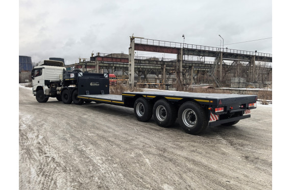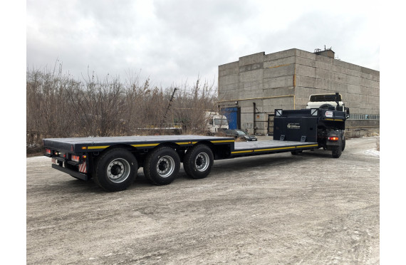 47000 кг, шины 445/65R22,5 / 6+1, платформа без трапов (12000 x 2500 мм, ССУ 1430 мм, пневматическая подвеска, раздвижные коники 1500 мм, съемные борта или без них, в ГАБАРИТЕ по ДЛИНЕ АВТОПОЕЗДА с КАМАЗ 6x6