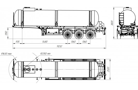 Материал: химстойкое стекловолокно, емкость: 20 куб.м., сечение: эллипсное, конструкция: однослойная или трехслойная (волокно, утеплитель, волокно), крепление: при помощи стяжных лент, перевозимые жидкости: кислоты/едкие вещества/нефть/техвода/щелочные и солевые растворы, автошины 385/65R22,5
